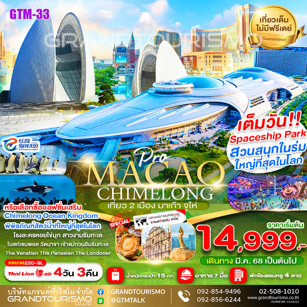 ทัวร์มาเก๊า จูไห่ CHIMELONG SPACESHIP ศาลเจ้านาจา 4วัน3คืน มี.ค.-เม.ย.68