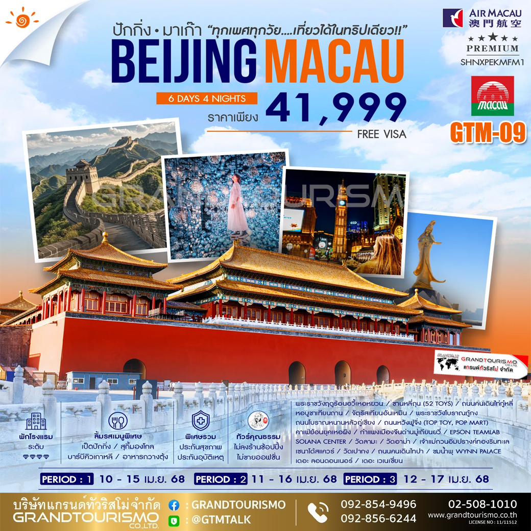 ทัวร์จีน ปักกิ่ง มาเก๊า 2 สไตล์ในทริปเดียว วันสงกรานต์ (ไม่ลงร้านช้อปิ้ง) 6วัน4คืน 10-15 / 11-16 / 12-17 เม.ย 68