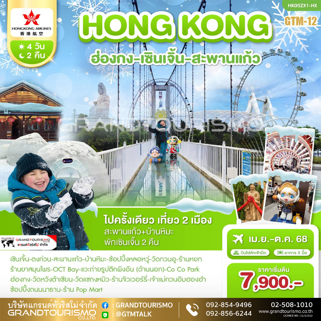 ทัวร์ฮ่องกง เซินเจิ้น ตงก่วน สะพานแก้ว บ้านหิมะ ช้อปปิ้งหลอหวู่ POP MART วัดกวนอู CO CO PARK 4 วัน 2 คืน เม.ย.-ต.ค. 68