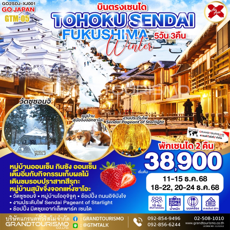 เดินทางสู่เมืองแห่งต้นไม้กับ ทัวร์เซนได ศูนย์กลางความสวยงามของภูมิภาคโทโฮคุ ที่พร้อมสะกดสายตาคุณด้วยทัศนียภาพทางธรรมชาติที่สมบูรณ์ที่สุด ไม่ว่าจะเป็นการล่องเรือชมเกาะน้อยใหญ่ หรือการแช่ออนเซ็นในหมู่บ้านย้อนยุค ให้ Grandtourismo พาคุณไปค้นพบญี่ปุ่นในมุมที่สงบและงดงามกว่าใคร