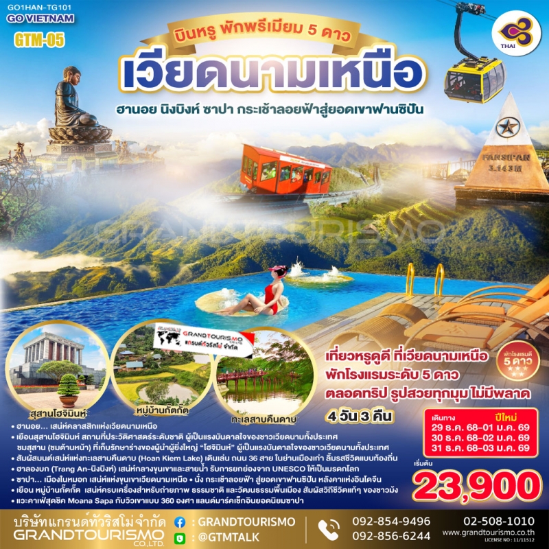 ทัวร์เวียดนาม ฮานอย ซาปา ฟานซิปัน แกรนด์เวิลด์ฮานอย ถนน36สาย ทะเลสาบคืนดาบ 4วัน3คืน ก.พ.-มี.ค.69 BY VN