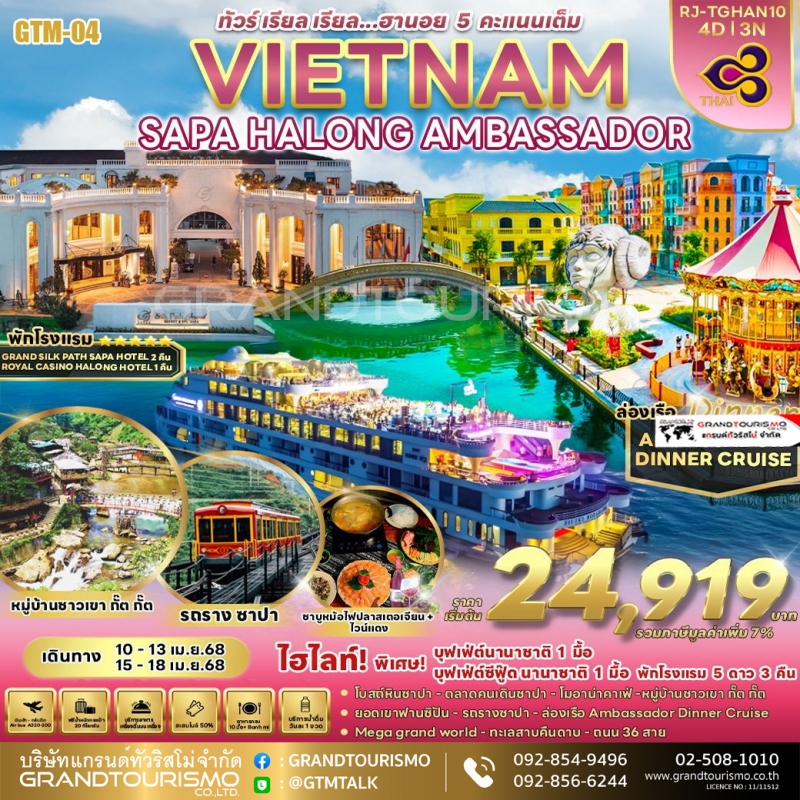 ทัวร์เวียดนามเหนือ ลาวไก ซาปา ฮานอย เมก้าแกรนด์เวิลดิ์ 4วัน3คืน ส.ค68- มี.ค69