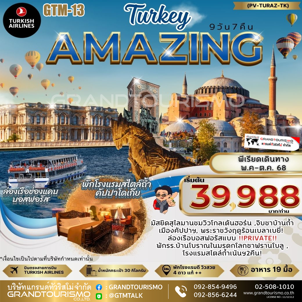 ทัวร์ตุรเคีย อิสตันบูล ปามุคคาเล่ คัปปาโดเกีย 9วัน7คืน พ.ค.-ต.ค.68