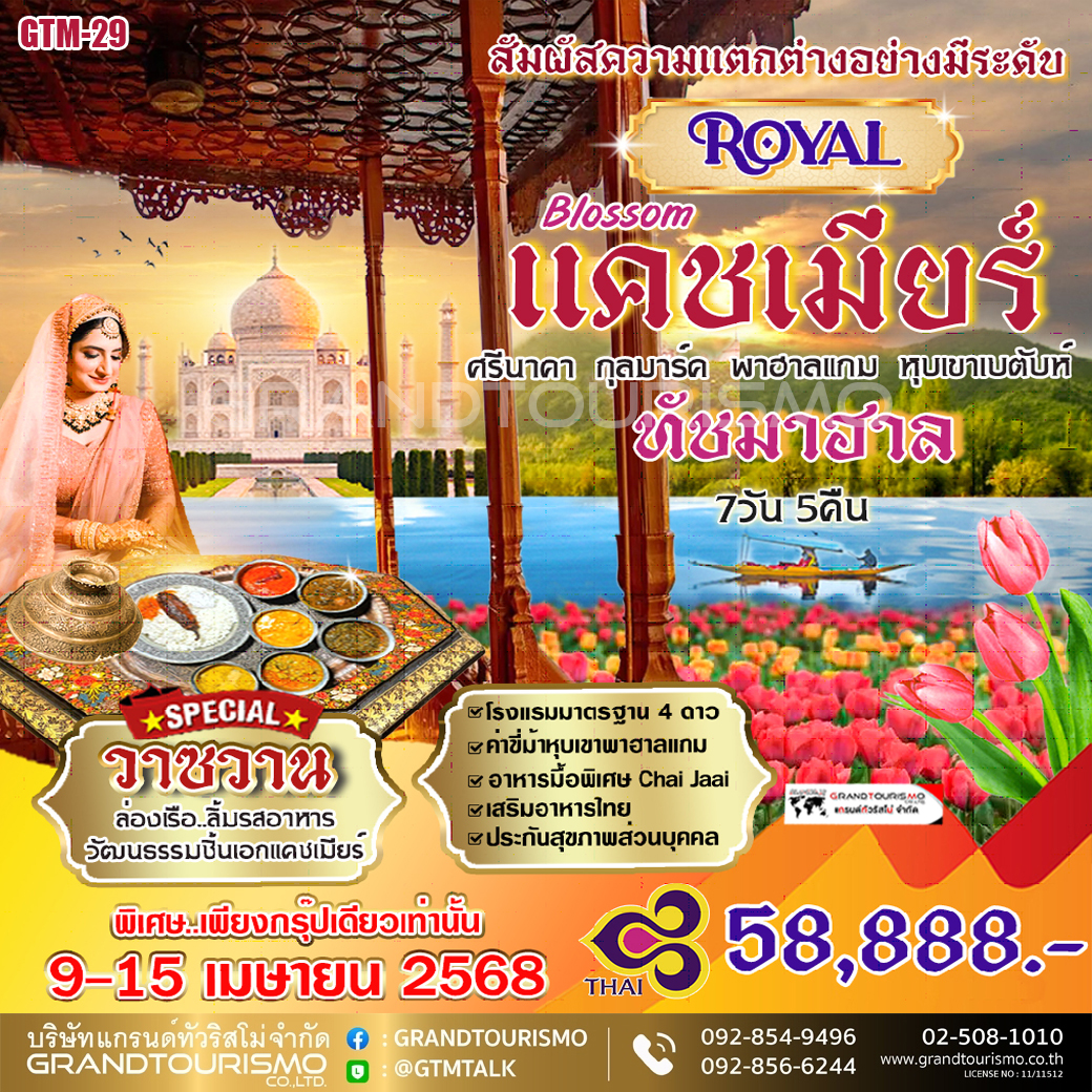 ทัวร์อินเดีย แคชเมียร์ ศรีนาคา กุลมาร์ค ทัชมาฮาล พาฮาลแกม หุบเขาเบตับห์ (บินภายใน) 7วัน5คืน 9-15 เม.ย.68