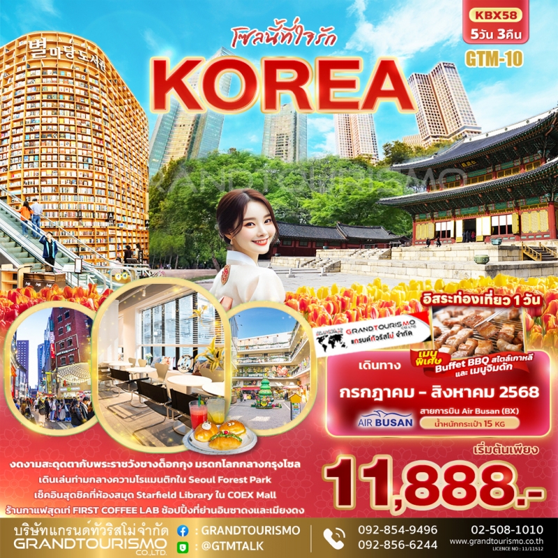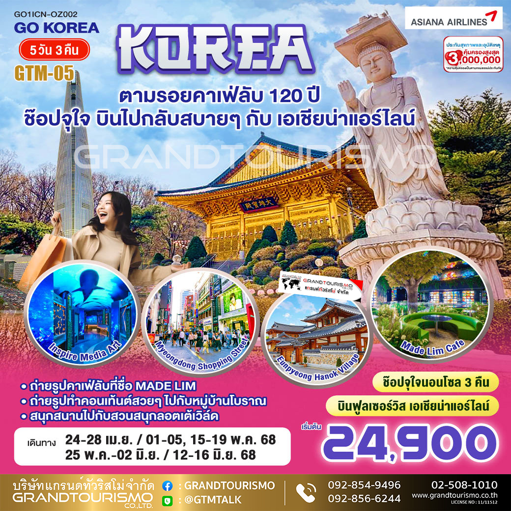 ทัวร์เกาหลี โซล เกาะนามิ เอเวอร์แลนด์ พระราชวังเคียงบกกุง หมู่บ้านโบราณบุกชอนฮันอก ฮงแด เมียงดง 5 วัน 3 คืน ก.ย.-ต.ค. 68