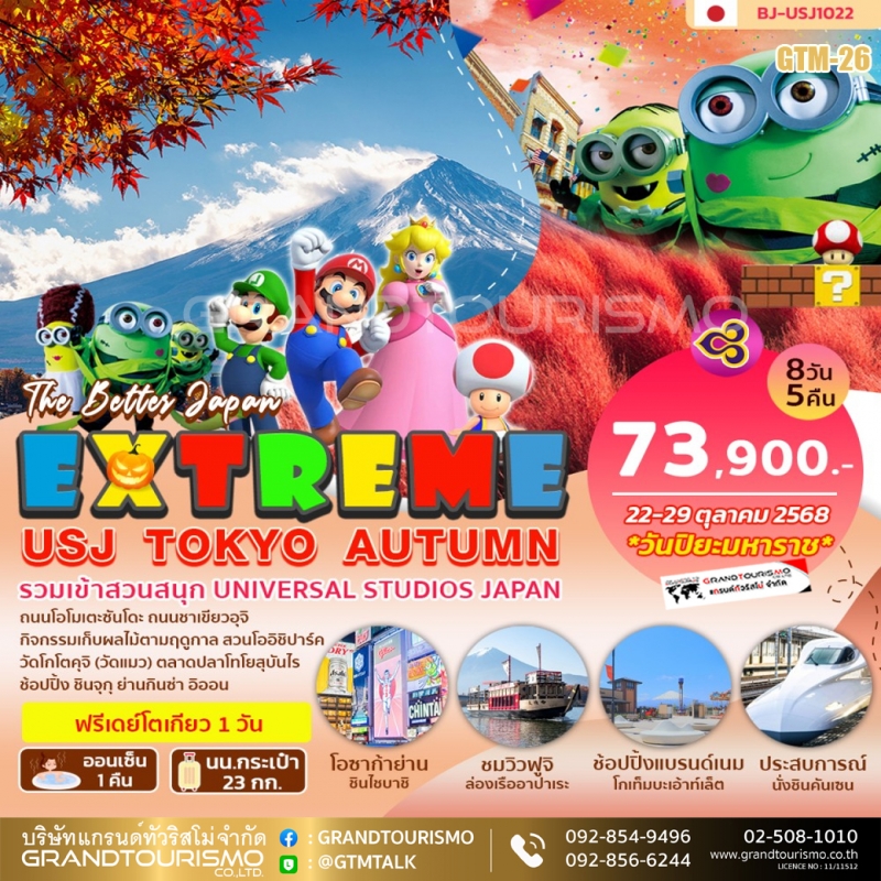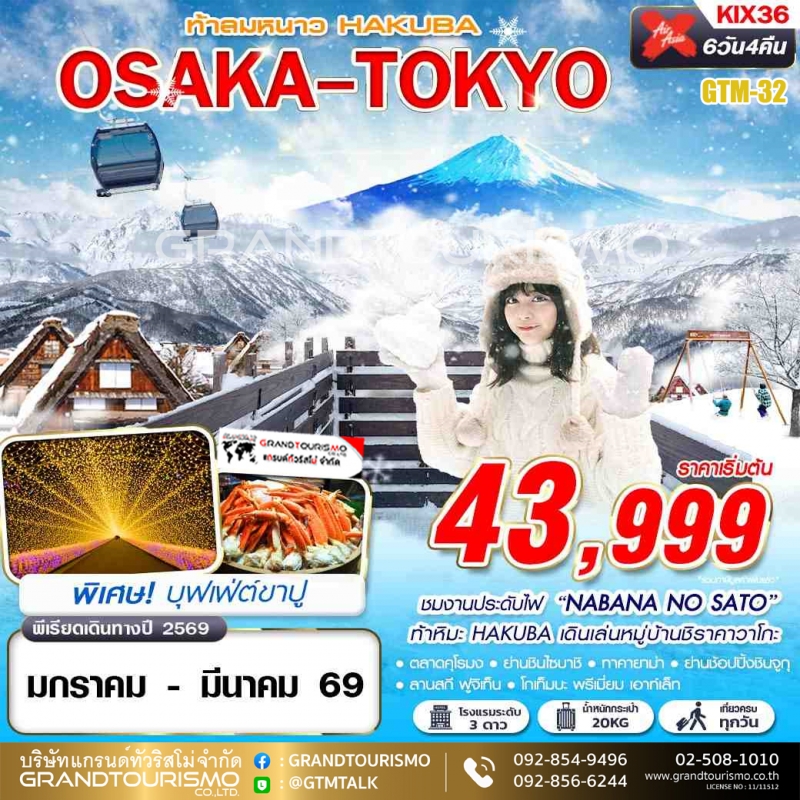สัมผัสความคุ้มค่ากับการเดินทางเส้นทางยอดนิยม ทัวร์โตเกียว โอซาก้า ที่จะพาคุณเช็คอินแลนด์มาร์คสำคัญทั่วเกาะฮอนชู ตั้งแต่ความทันสมัยของโตเกียว ความยิ่งใหญ่ของภูเขาไฟฟูจิ จนถึงสวรรค์แห่งของกินที่โอซาก้า Grandtourismo พร้อมดูแลให้ทริปยาวของคุณสะดวกสบายและประทับใจที่สุด