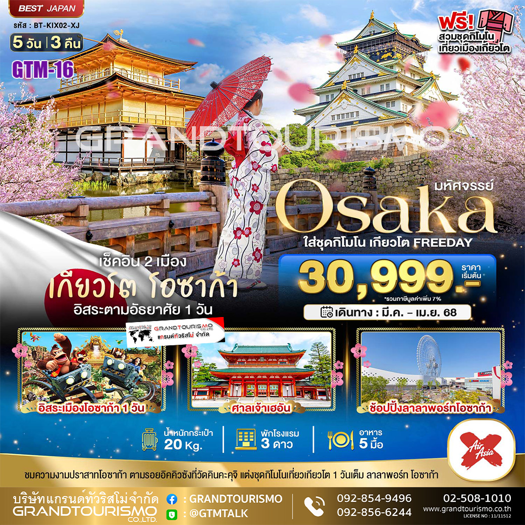 ทัวร์ญี่ปุ่น โอซาก้า เกียวโต ศาลเจ้าเฮอัน อิสระ1วัน 5วัน3คืน มี.ค.-เม.ย.68