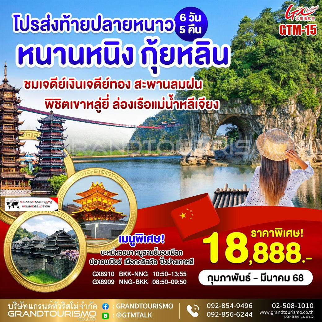 ทัวร์จีน หนานหนิง กุ้ยหลิน หยางซั่ว 6วัน5คืน ก.พ.-มี.ค.68