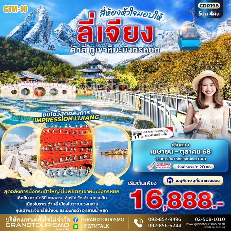 ทัวร์จีน ลี่เจียง ต้าหลี่ ภูเขาหิมะมังกรหยก สระมังกรดำ หุบเขาสีน้ำเงิน ชมโชว์ IMPRESSION LIJIANG 5 วัน 4 คืน เม.ย.-ต.ค. 68
