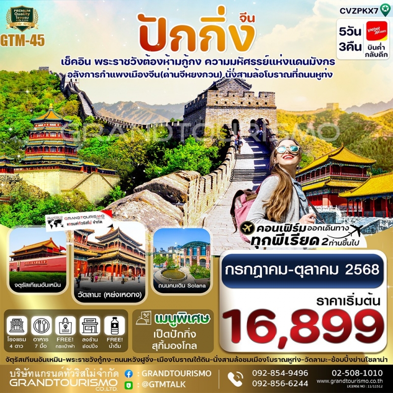 ทัวร์จีน ปักกิ่ง พระราชวังกู้กง-กำแพงเมืองจีน เมืองโบราณหูท่ง วัดลามะ 5วัน3คืน ก.ค.-ต.ค.68
