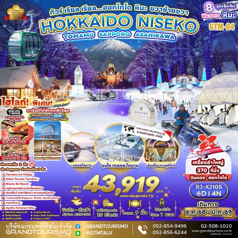 ทัวร์ญี่ปุ่น ฮอกไกโด โฮชิโนะรีสอร์ทโทมามุ ออนเซ็น โรงบ่มไวน์อิเคดะ ฟุราโน่ นิงเกิ้ลเทอเรส สวนสัตว์อาซาฮิยาม่า ซัปโปโร 6 วัน 4 คืน ธ.ค. 68-มี.ค. 69