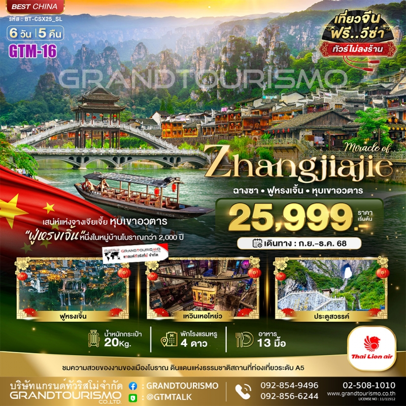 ทัวร์จีน ฉางซา จางเจียเจี้ย เฟิงหวง ฟูหรงเจิ้น (ไม่ลงร้าน) 6วัน5คืน ก.ย.68-ม.ค.69