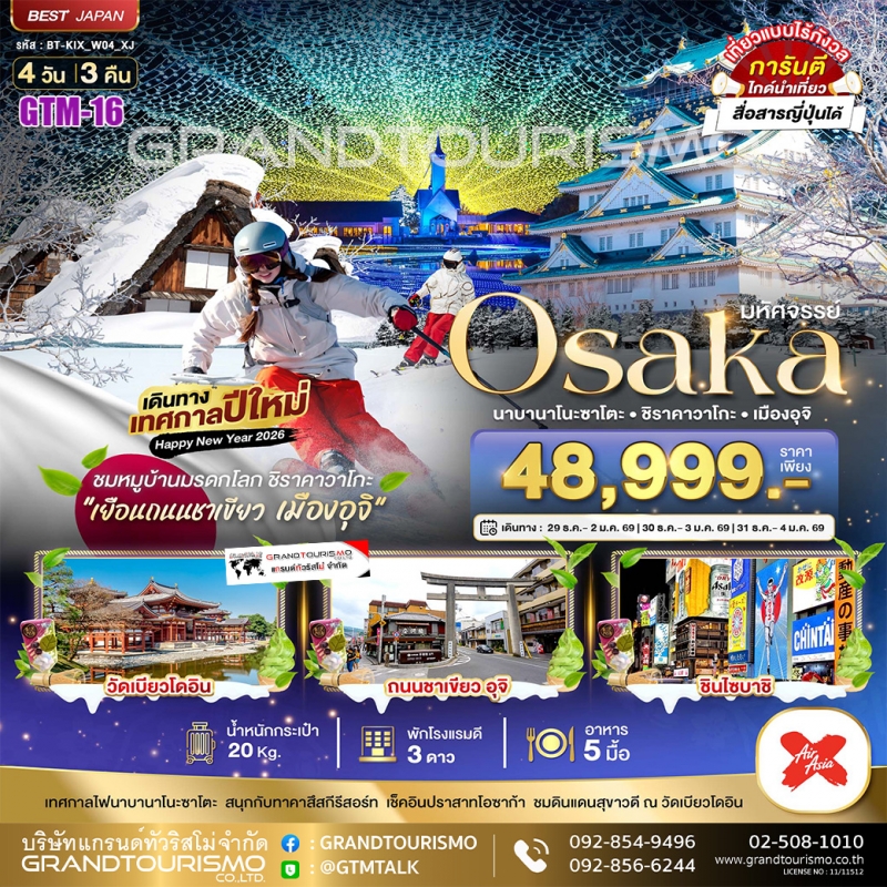 ทัวร์ญี่ปุ่น โอซาก้า นาบานาโนะซาโตะ ชิราคาวาโกะ อุจิ ทาคาสึสกีรีสอร์ท 4วัน3คืน ธ.ค.68-ม.ค.69