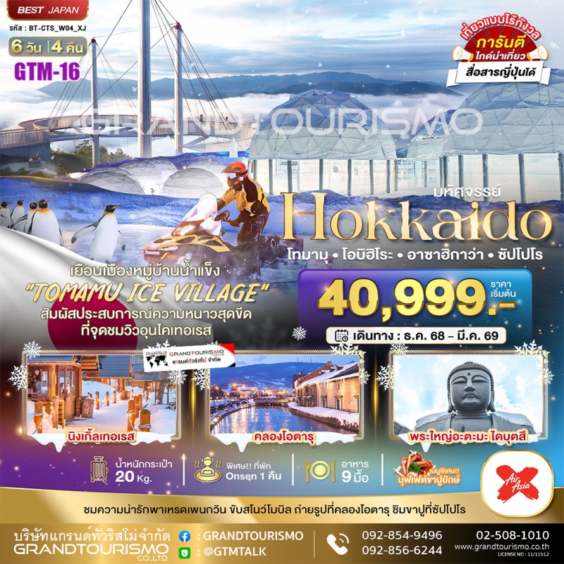 ทัวร์ญี่ปุ่น ฮอกไกโด โทมามุ โอบิฮิโระ อาซาฮิกาว่า ซัปโปโร 6วัน4คืน ธ.ค.68-มี.ค.69