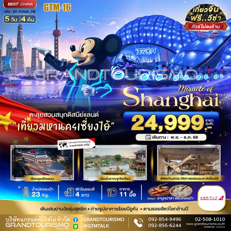 ทัวร์จีน เซี่ยงไฮ้ ดิสนีย์แลนด์ เมืองโบราณจูเจียเจี่ยว สวนนอร์ทบันด์ ลอดอุโมงค์เลเซอร์ (ไม่ลงร้าน) 5วัน3คืน พ.ย.68-ม.ค.69