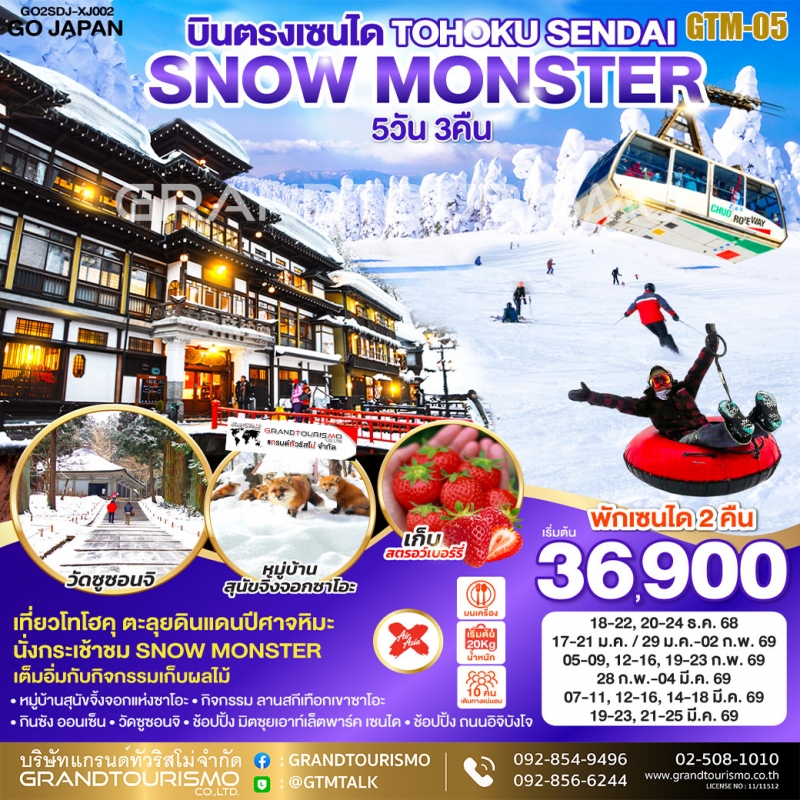 ทัวร์ญี่ปุ่น เซนได บินตรงเซนได อิวาเตะ ยามากะตะ SNOW MONSTER หมู่บ้านสุนัขจิ้งจอกซาโอะ 5วัน3คืน ธ.ค.68-มี.ค.69