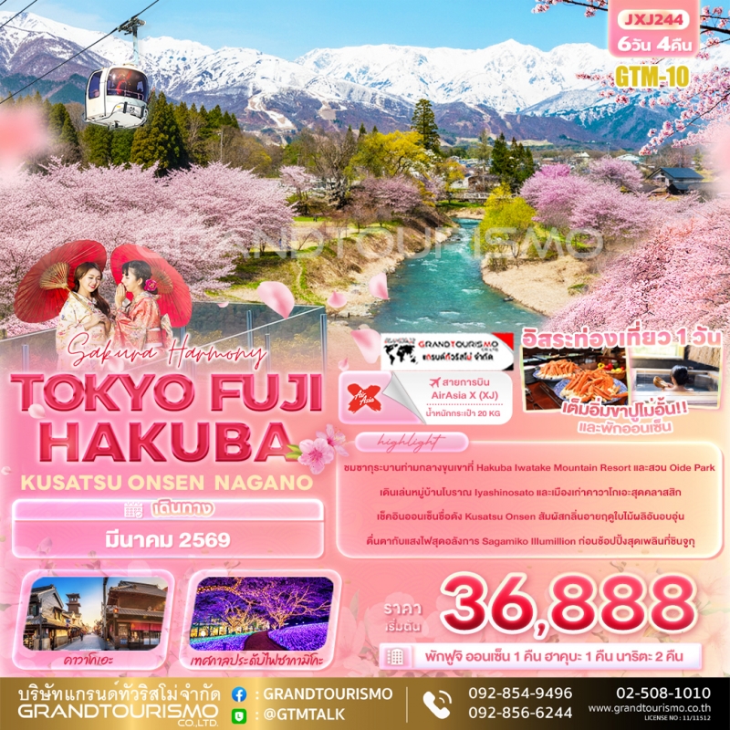 ทัวร์ญี่ปุ่น โตเกียว อิสระ 1 วัน คาวาโกเอะ คุซัทสึออนเซ็น ฮาคุบะ ทะเลสาบซูวะ งานประดับไฟซากามิโกะ บุฟเฟ่ต์ขาปู่ยักษ์ ชินจูกุ 6 วัน 4 คืน ก.พ.-มี.ค. 69