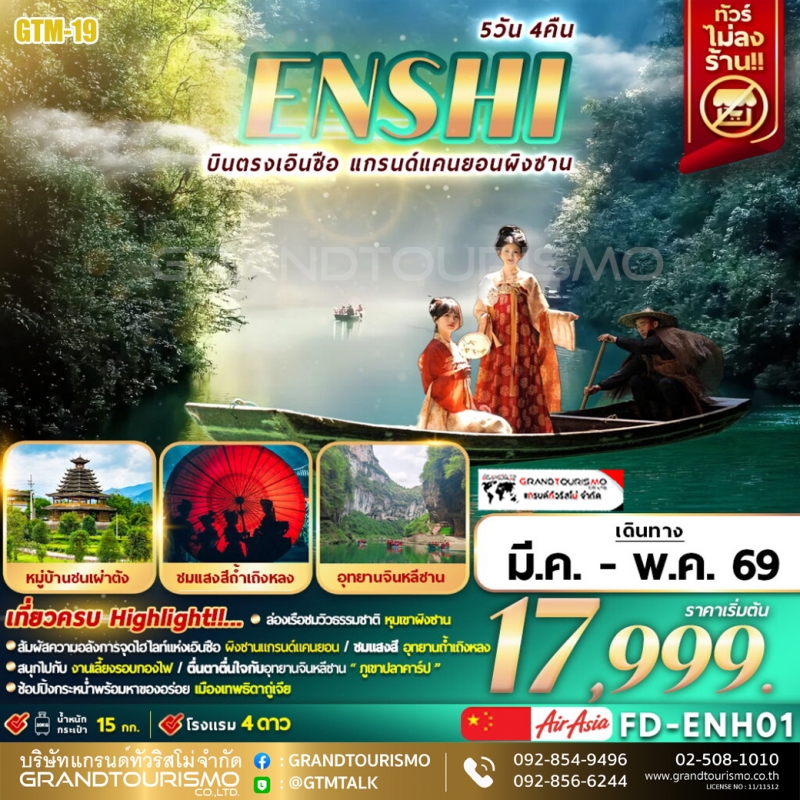 ทัวร์จีน เอินซือ ไม่ลงร้าน หมู่บ้านชนเผ่าต้ง อุทยานซือจือกวน ด่านสิงโต แกรนด์แคนยอนผิงซาน อุทยานจินหลีซาน อุทยานถ้ำเถิงหลง 5 วัน 4 คืน มี.ค.-พ.ค. 69