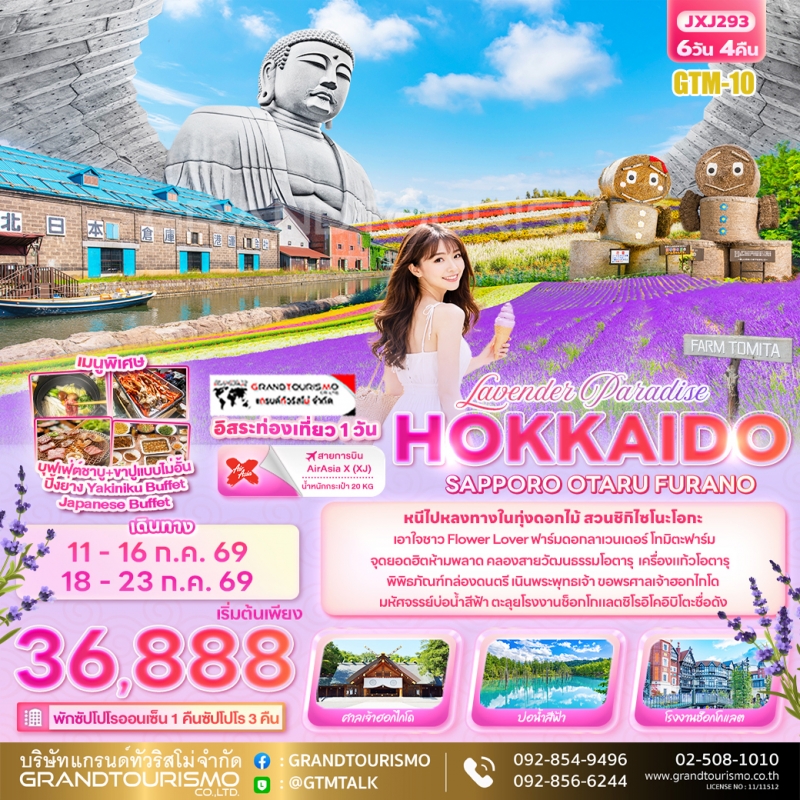 ทัวร์ญี่ปุ่น ฮอกไกโด อิสะ 1 วัน ซัปโปโร โอตารุ เนินพระพุทธเจ้า ทานุกิโคจิ บ่อน้ำสีฟ้า ฟาร์มโทมิตะ สวนชิกิไซโนะโอกะ บุฟเฟ่ต์ขาปู + ชาบู 6 วัน 4 คืน ก.ค. 69